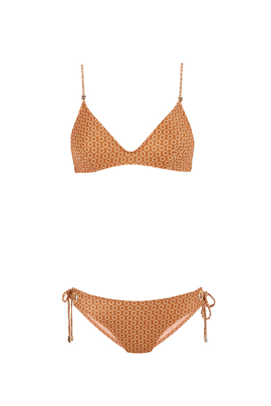 Aurora - Bikini Naranja Estampado con Escote Redondo