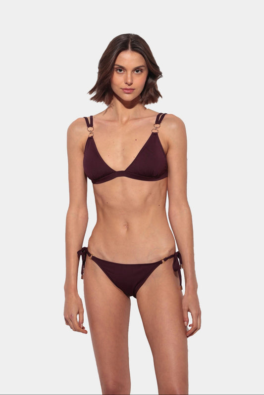 Sabbia - Bikini Vino Triángulo con Frunce y Anillas Doradas