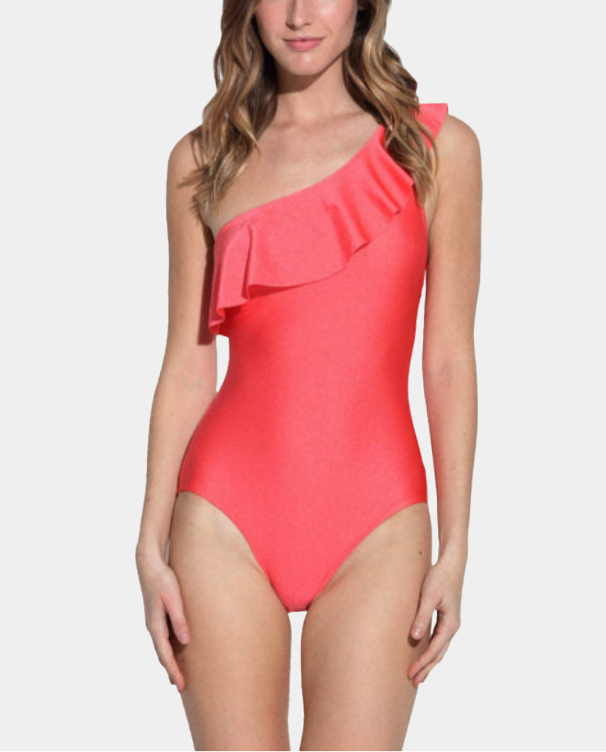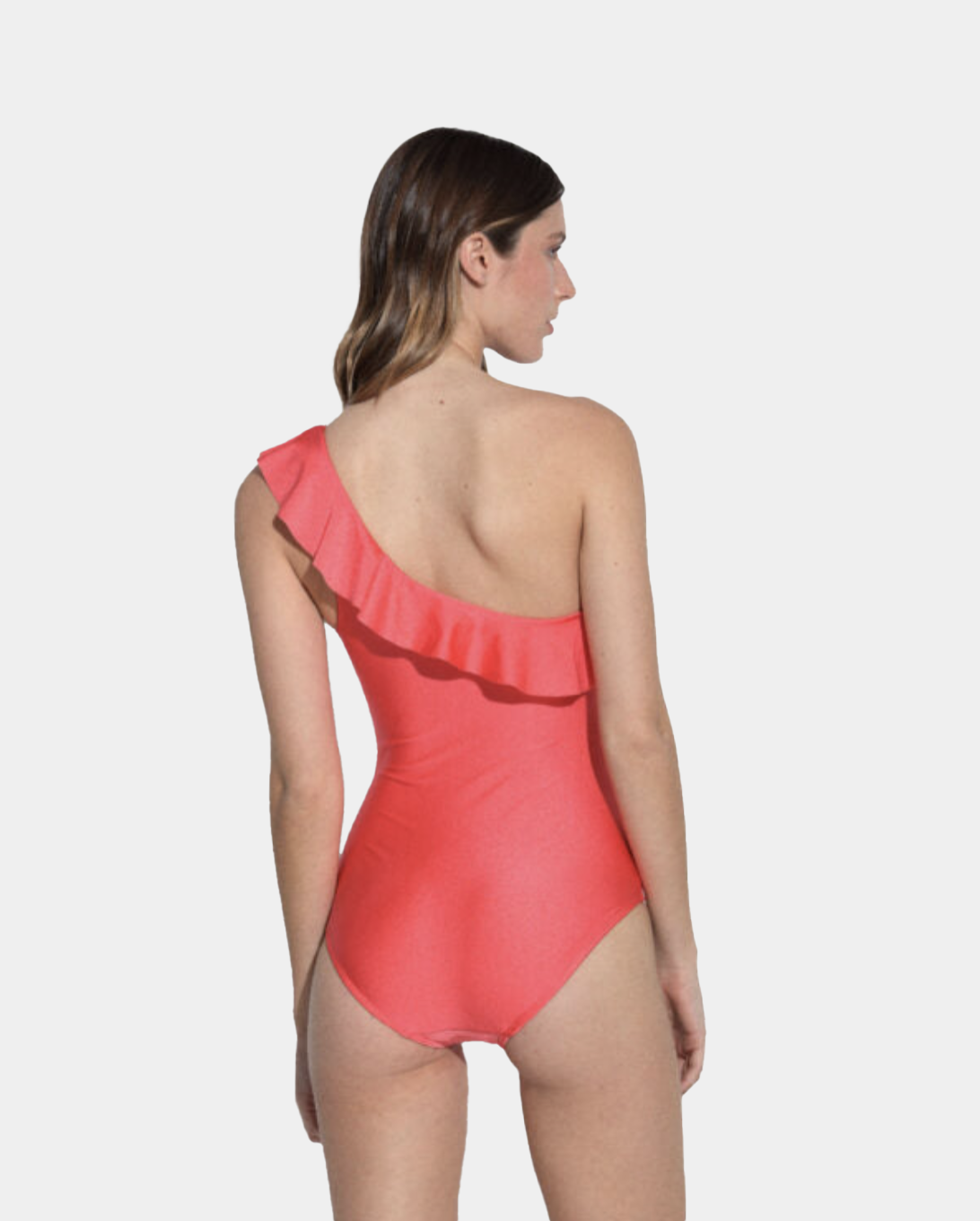 Este bañador con el hombro descubierto de Guillermina Baeza es asimétrico. Tiene un hombro con volante y copa extraíble. Su tejido es muy agradable y cómodo. Ideal si quieres lucir un look atrevido. La prenda está forrada, de modo que proporciona mayor sujeción.